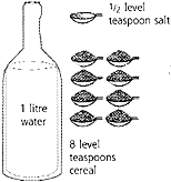 A liquid that can be given to people to restore the fluid that they have lost through diarrhoea. ORS can be made from packets, by mixing salt, sugar and water or by making a watery porridge from powdered cereals such as rice and maize |